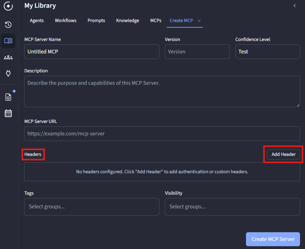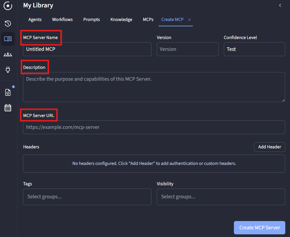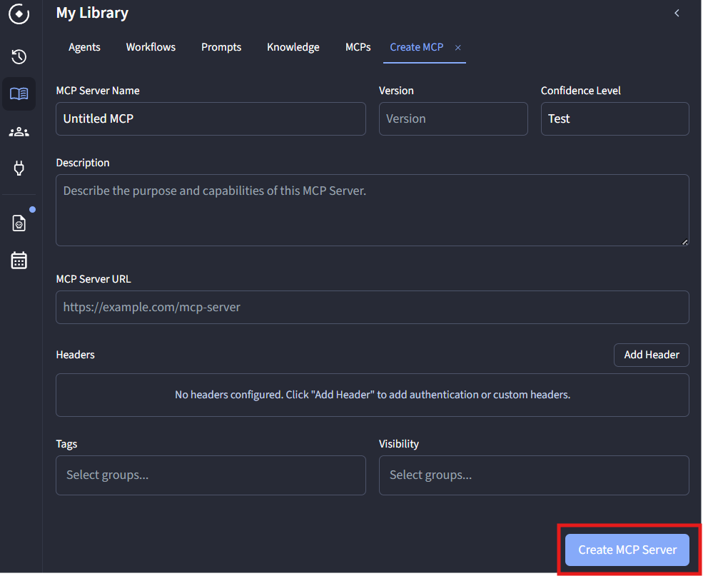 - Click Create MCP Server