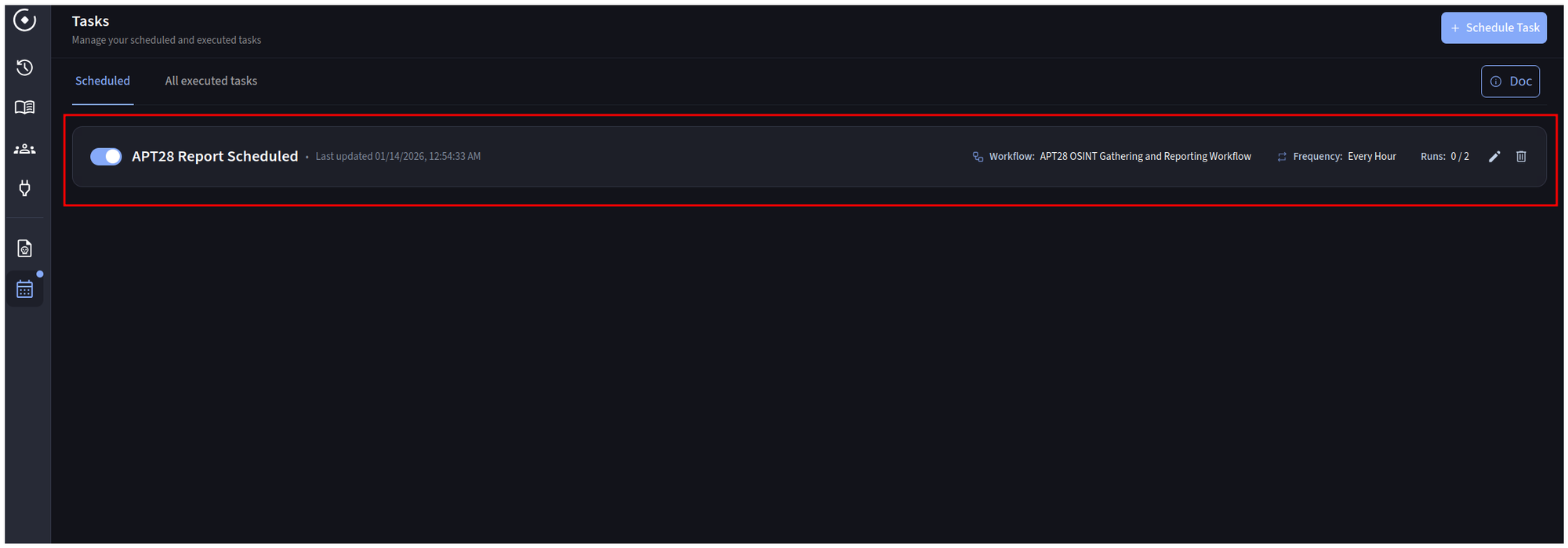 Once configured, we will see the scheduled task in the panel, and when it is time for execution, we will be able to see all the results of our tasks in “All executed tasks.”